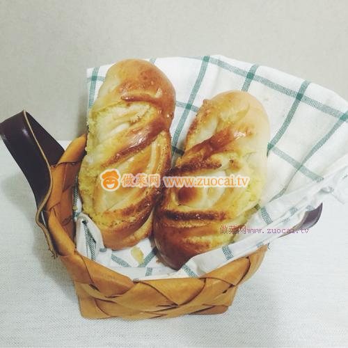 12.將面包45度扭轉(zhuǎn),擰成麻花狀。放到烤箱里繼續(xù)發(fā)酵。