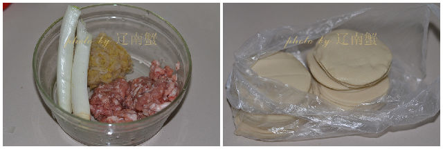 材料:餃子皮 五花肉餡 酸菜 蔥姜