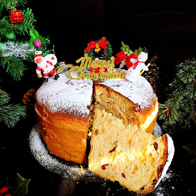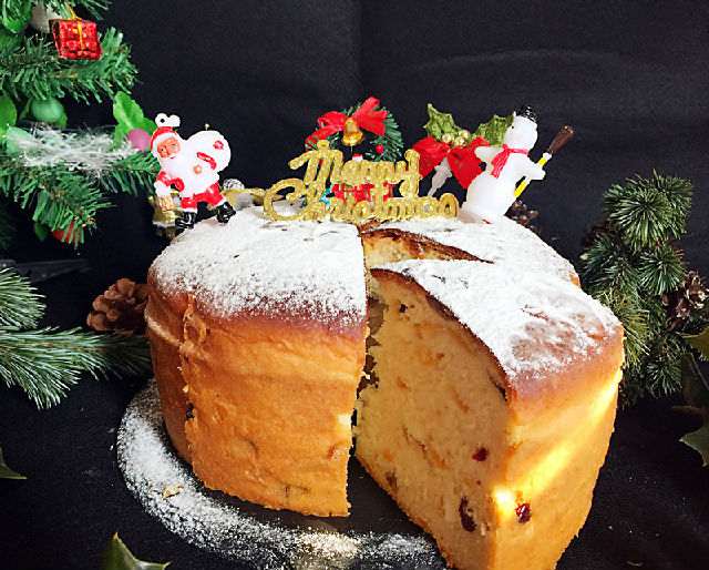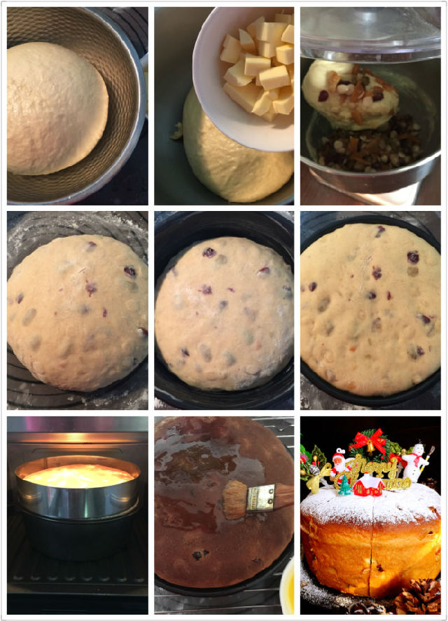 學(xué)做了糖小餅的意大利的圣誕節(jié)面包潘妮托尼,我感覺各種款的圣誕面包啊甜點(diǎn)啊什么的都是混合果干類型的東西,大概是因?yàn)楦鞣N各樣的豐富果料給人一種很豐盛的感覺吧!這款面包里的果料我是提前一晚浸泡,面團(tuán)要經(jīng)過3次低溫發(fā)酵,真的很費(fèi)時(shí),但是成品出來很像蛋糕的口感,真的值得你等待!