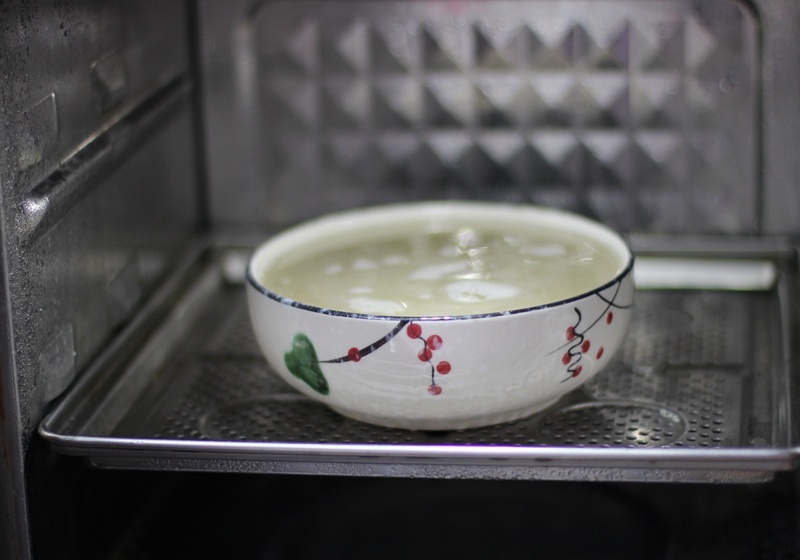 放入蒸箱里蒸熟(泡的水不倒直接蒸哈,用蒸鍋也一樣,反正蒸熟就行)