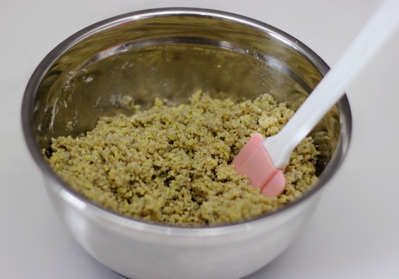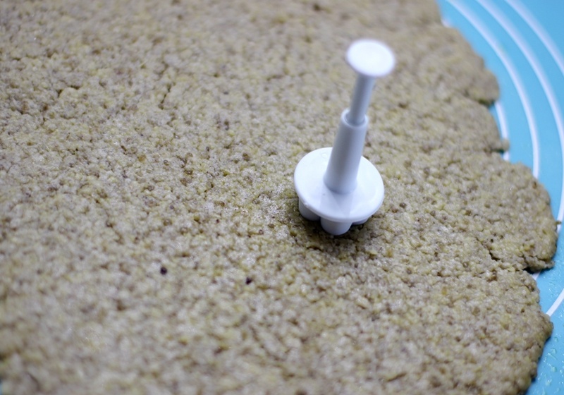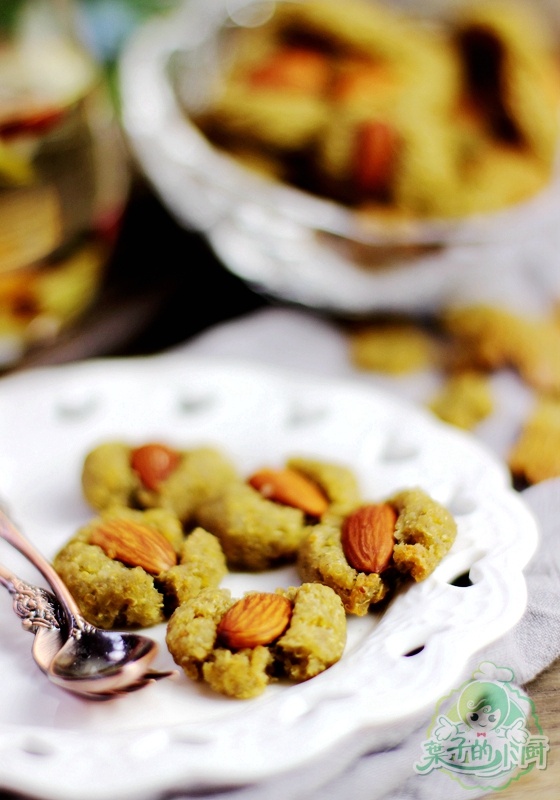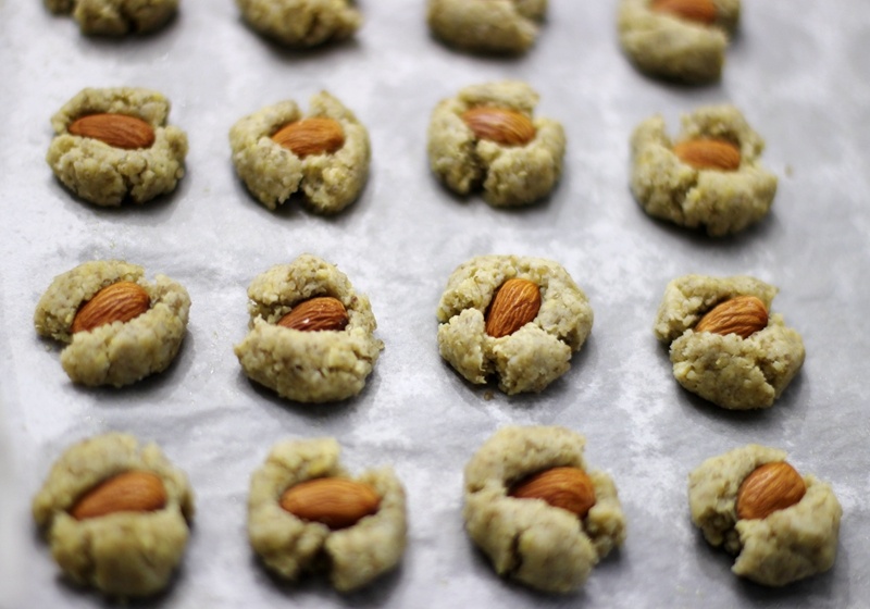 捏成小球,然后每個(gè)小球上按壓一粒杏仁。注意捏的時(shí)候稍微用點(diǎn)力,不然太容易散開,按壓的時(shí)候用力均勻