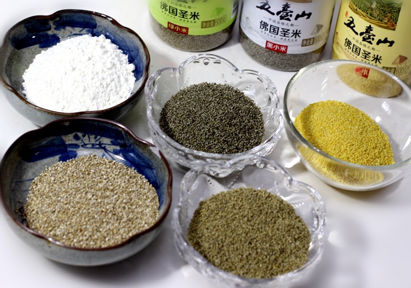 黃小米50克、綠小米50克、黑小米50克、藜麥50、面粉50克、植物油10克