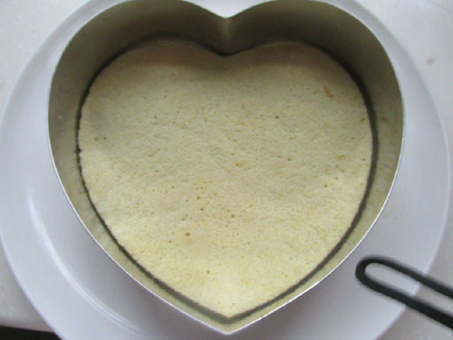 6,上下火170度25分鐘靠后后放涼蛋糕,用慕斯模具扣出想要的形狀。