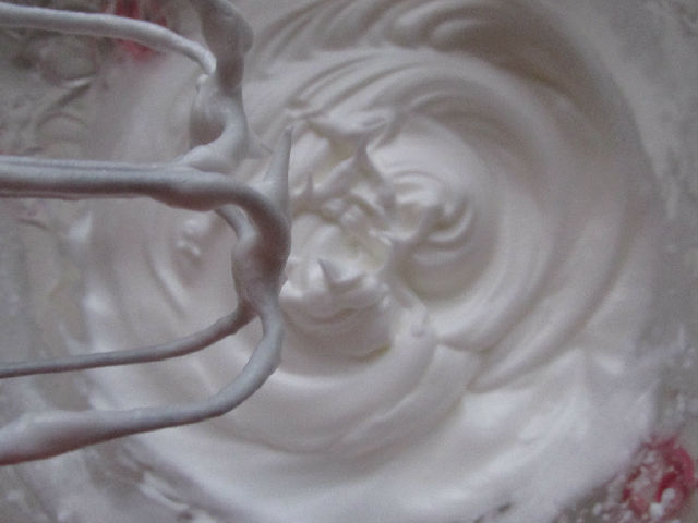 3,把蛋清加白糖打成干性發(fā)泡成蛋白霜。