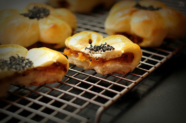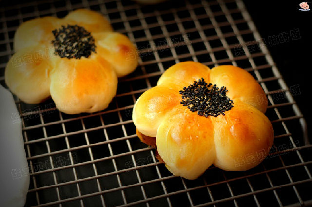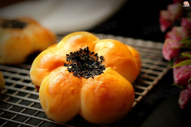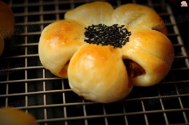 面團(tuán)原料:高粉250克,細(xì)砂糖40克,鹽1/4小匙,全蛋55克,酵母粉3克,牛奶100克,黃油20克。