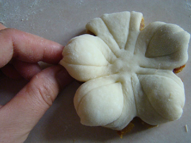 12,用手把每一組都往里捏,捏成花瓣型,如圖所示。