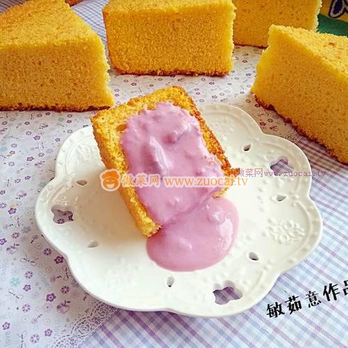 6.取一塊蛋糕澆上酸奶泥就可以享用了