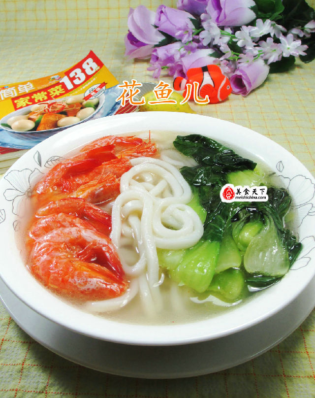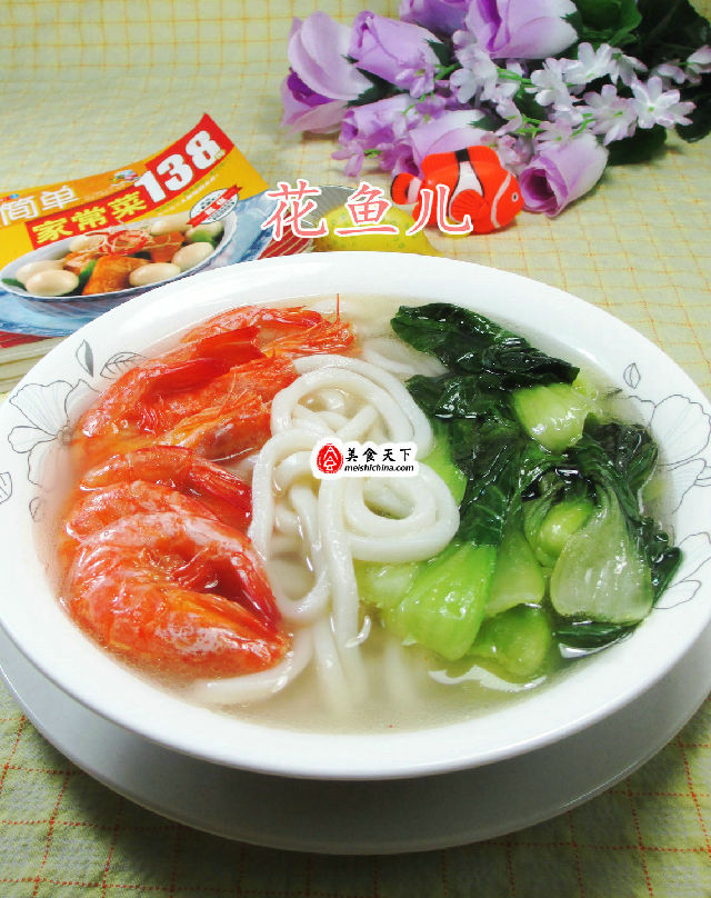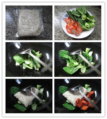 食材:烏冬面、蝦干、青菜(已洗凈)