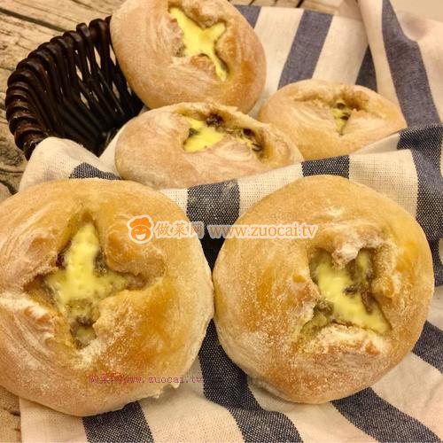 1.面包材料中除黃油外的材料混合,揉成面團(tuán),放入冰箱冷藏半小時(shí)