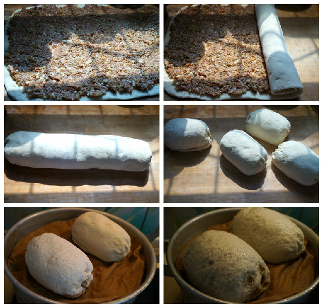 8. 從一側(cè)卷向另一側(cè),不要太松也不要太緊;太松會導(dǎo)致面皮餡料之間不貼合,太緊會導(dǎo)致漲發(fā)不起來,形成死面或者面皮表面開裂;