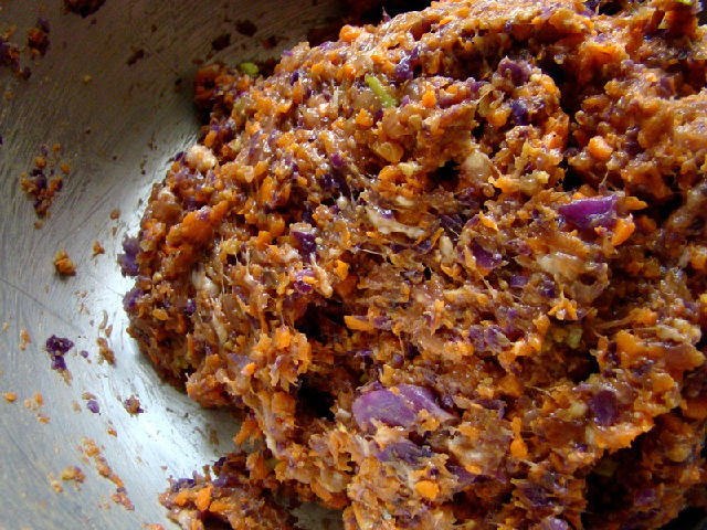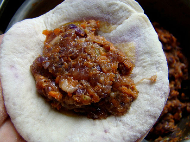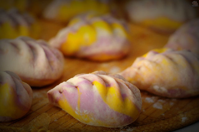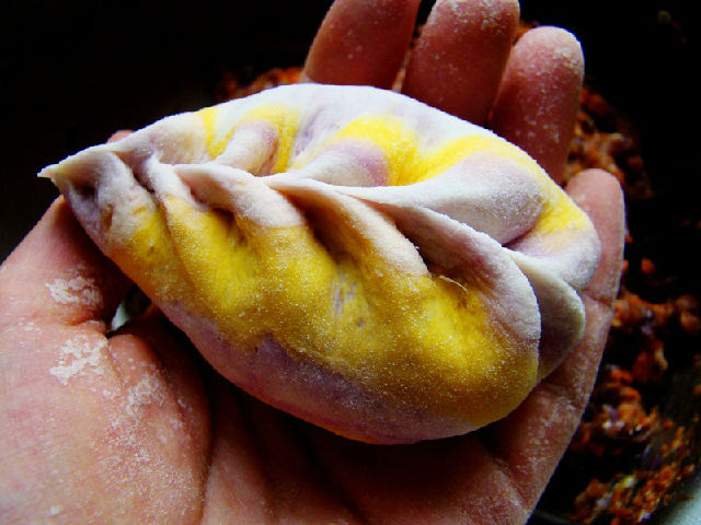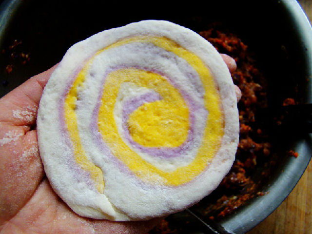 餡料:豬肉餡、胡蘿卜渣、紫甘藍(lán)渣。