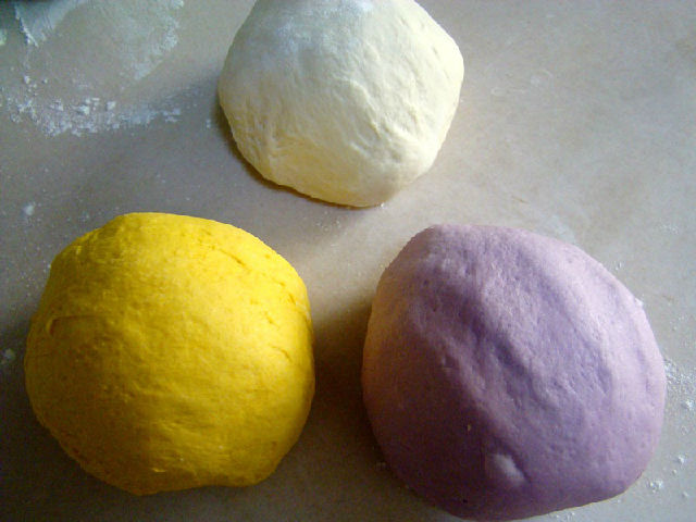 11,把三種面團(tuán)原料分別揉勻揉光,室溫下醒約5分鐘。