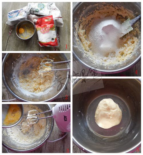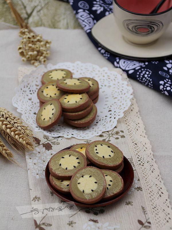 食材:低筋面粉275克、無鹽黃油150克、糖粉100克、蛋液50克、抹茶粉8克、可可粉5克、吉士粉5克、