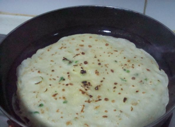 6 在翻個(gè)面加點(diǎn)雞油,當(dāng)餅兩面變成金黃色,就熟了。非常簡單。