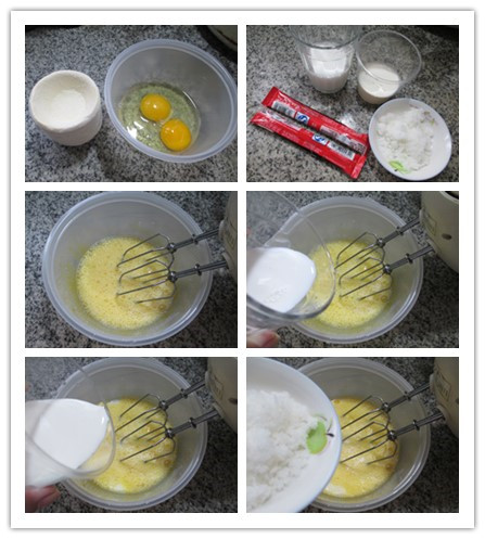 做法:(1)將雞蛋用電動打蛋器打成蛋液。