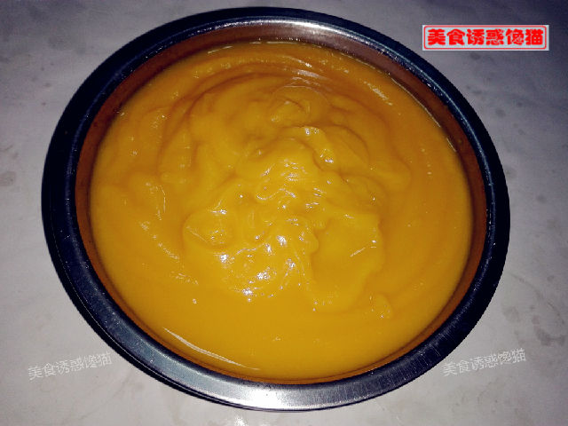 1、將南瓜蒸熟,用攪拌機打成南瓜泥。