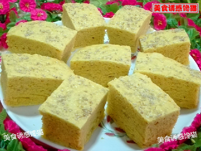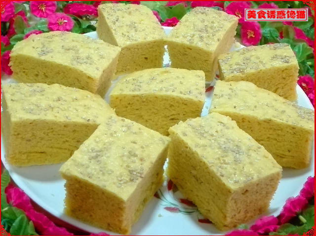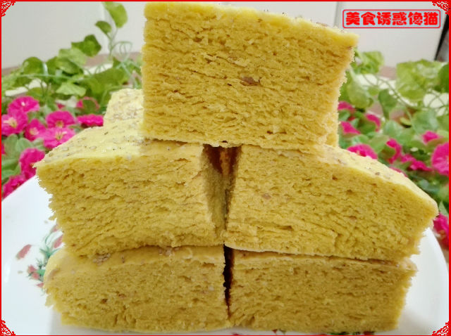 本款南瓜花生蒸糕,口感松軟細膩、香甜可口,老少皆宜;外觀黃澄澄、金燦燦,誘人食欲,深受家人的贊賞。