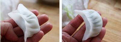 6.餡料里的蔥姜可以換成蔥姜水,不過成品出來一點(diǎn)隱約可見的綠色也是很美的。