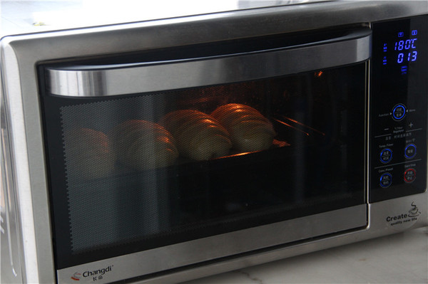 12、放入預(yù)熱好的烤箱中層,上下火180度,烤15分鐘