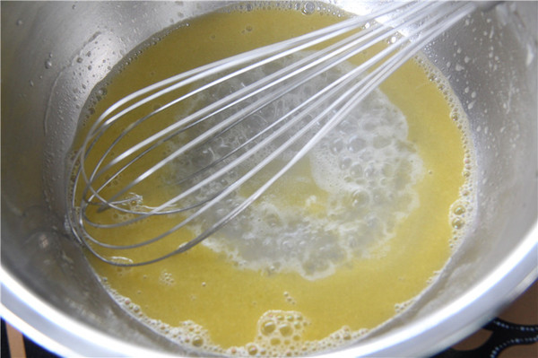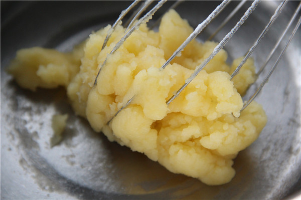10、待面團(tuán)溫涼后加入雞蛋液拌成倒三角狀即可