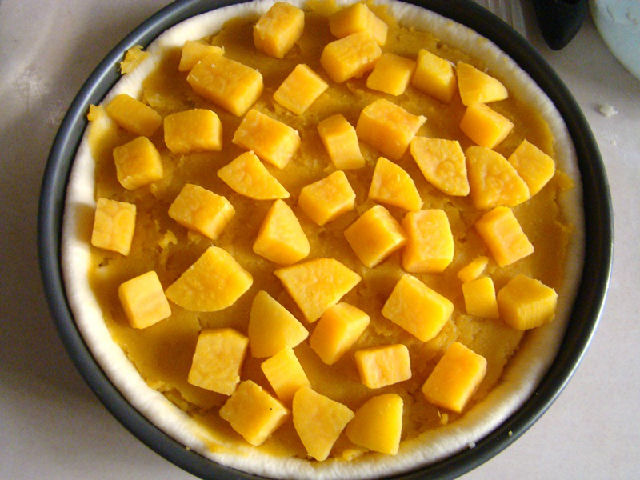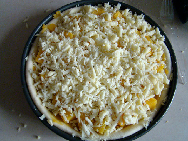 7,鋪上一層紅薯泥,撒上適量馬蘇里拉奶酪。