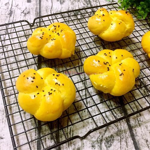 中種面團材料:() 高筋面粉(120克) 南瓜泥(70克) 溫水(50克) 酵母(3克) 主面團材料:() 高筋面粉(150克) 奶粉(10克) 鹽(1克) 全蛋液(45克) 溫水(20克) 裝飾材料:() 全蛋液(適量)