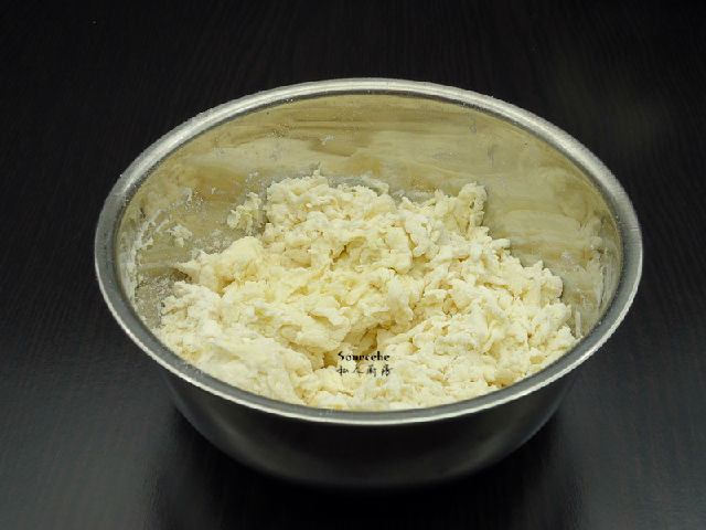 1.面粉加適量水,拌成有片狀;