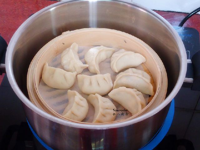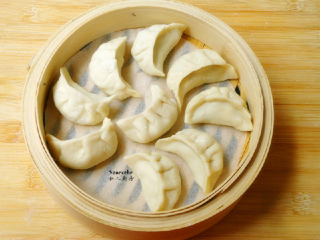 10.把包的餃子放入蒸籠中;