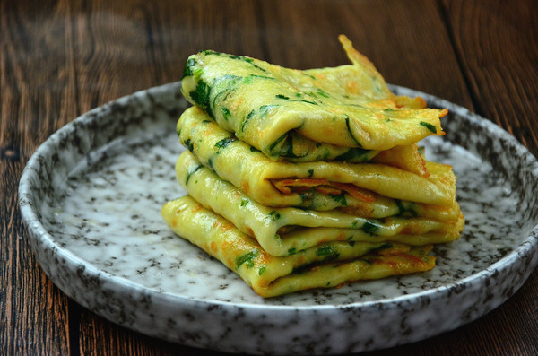 八、按以上步驟做完剩余的面糊即可,香噴噴的雞蛋餅裝盤開吃吧,搭配一杯牛奶,吃的美美噠