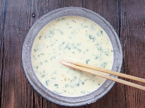 四、將雞蛋順著一個方向打散,攪打成均勻的雞蛋面糊