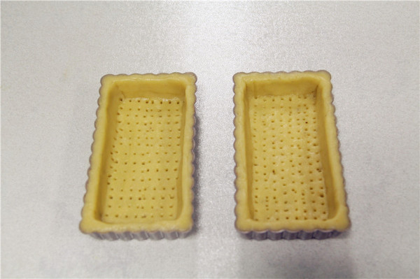 6、用叉子在派皮底部叉上一些孔,防止派皮烤的時候鼓起;然后放入預熱好的烤箱中層,上下火180度,烤20-25分鐘,直到派皮表面金黃色