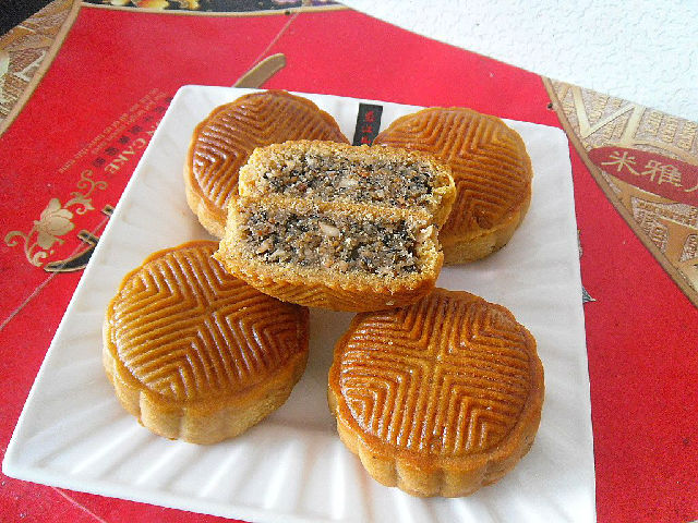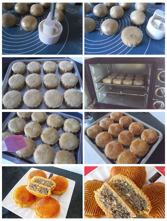 16、依次全部做完。用100克的模具壓制。18、脫模即成月餅生坯。
