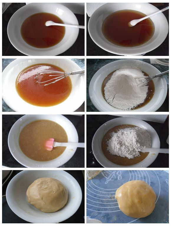 2、加入堿水,攪打均勻。一定要均勻。3、再加入玉米油攪拌均勻。
