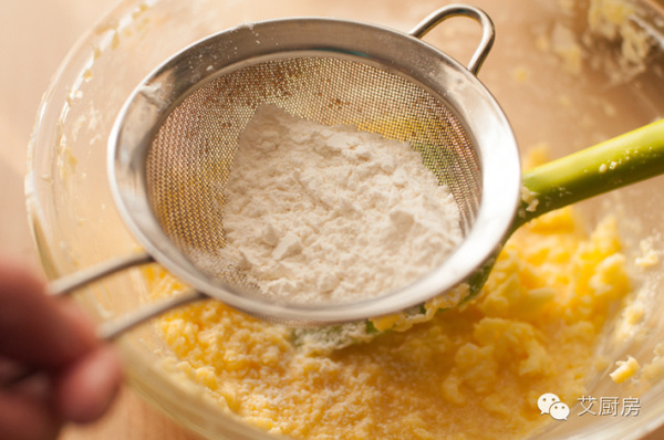 4.打勻后再篩入低筋面粉。