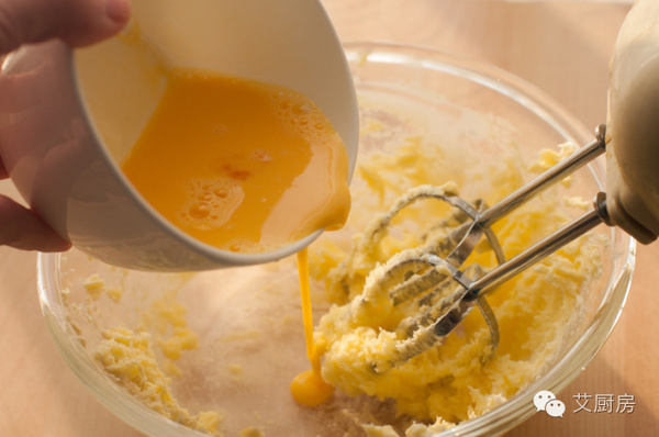 3.分次加入蛋液。