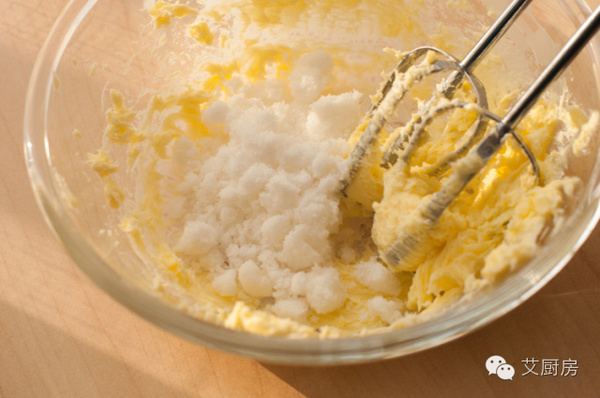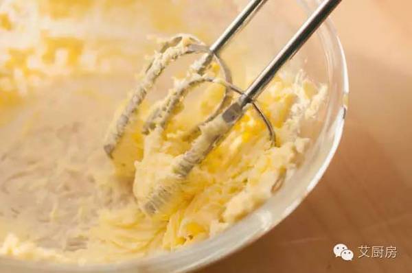 1.黃油室溫軟化,然后用打蛋器打發(fā)成羽狀。