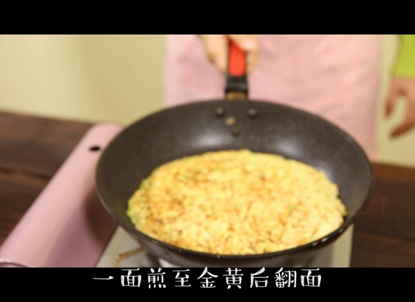 4,一面煎至金黃后翻面,兩面煎至金黃后盛出即可