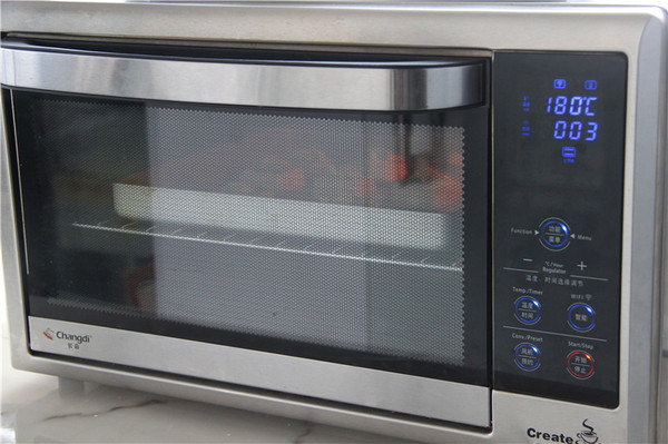 7、送入預(yù)熱好的烤箱中層,上下火180度,烤5分鐘即可