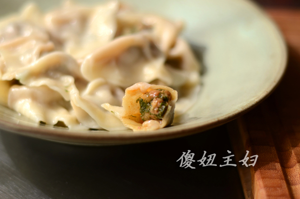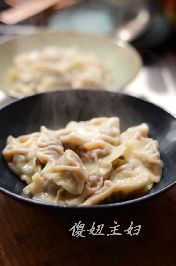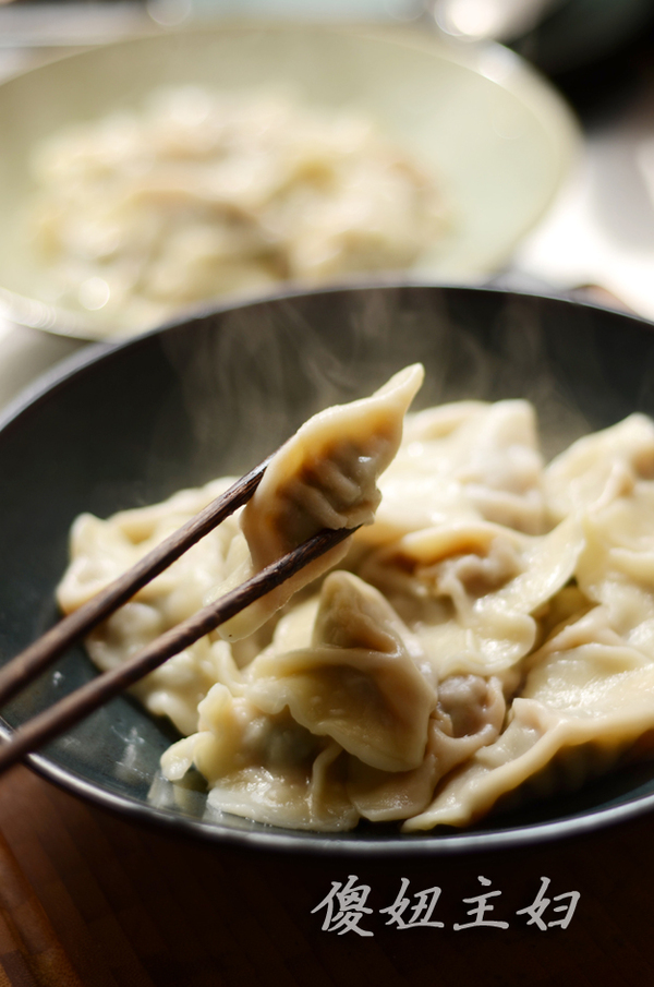 6。鍋里水燒開(kāi),下入餃子,水開(kāi)后加半碗涼水,依次水開(kāi)三次加涼水,最后一次就可以盛出了!