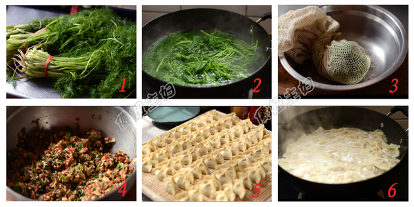 3。茴香苗撈出放進(jìn)用麻布中,攢干水分。再剁成細(xì)末備用。