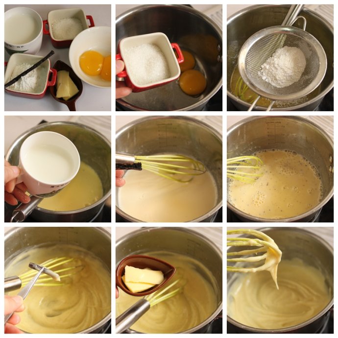 4 將蛋奶糊小火加熱,邊煮邊用打蛋器快速攪拌,以免結(jié)塊或者糊底