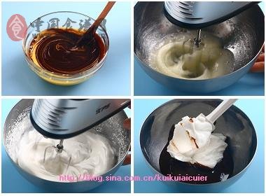 檸檬汁,將蛋白打至8分發(fā),中間分三次加入細(xì)砂糖(參見蛋白的打發(fā))。