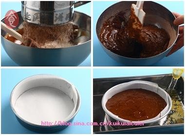 4、蛋白分三次與巧克力蛋黃面糊混合,輕輕的翻拌均勻。