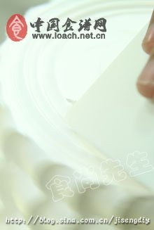 注:刮蛋糕側面時,刮片應垂直于轉臺并與蛋糕側面張開35°左右,將刮片貼與蛋糕表面直至光滑。