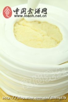 奶油以中速打發(fā)至六成(光滑、細膩狀),將奶油裝入裱花袋中(不可超過裱花袋的三分之二),然后將奶油均勻地擠在蛋糕胚的表面。
