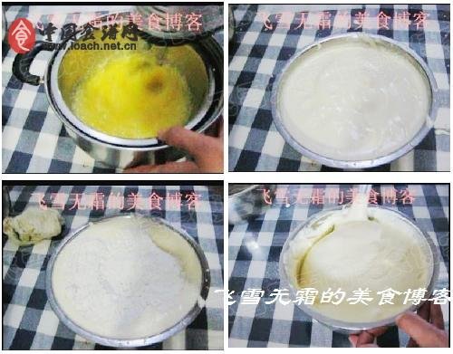 5,油和水混合好。放入一部份蛋糊混合均勻