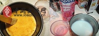 1.蛋黃加5g糖攪拌均勻,加入色拉油和牛奶攪拌均勻