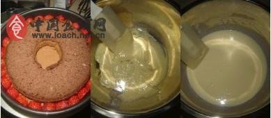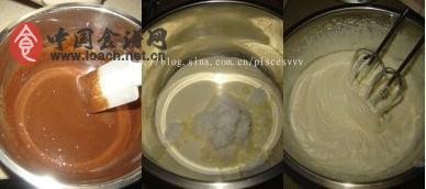 3、將牛奶溶液倒入步驟一的巧克力中,混合均勻;