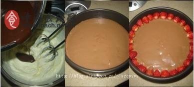 4、倒入白巧慕斯,入冰箱冷藏成型后脫模;