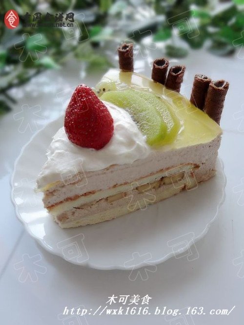 戚風蛋糕,然后做慕斯餡、接著組合戚風蛋糕和慕斯餡、最后再進行蛋糕表面裝飾。無論是做